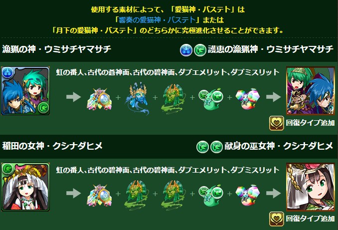 【パズドラ】一部キャラが究極進化&パワーアップ!【クシナダ、バステト、ウミヤマ】
