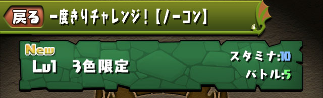 期間中、スペシャルダンジョンに「一度きりチャレンジ!【ノーコン】」が登場!!