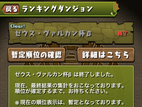 ゼウスヴァルカン杯βは終了しました。