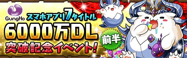 スマートフォンアプリ7タイトルの総ダウンロード数6,000万DL突破を記念して、「ガンホースマホアプリ7タイトル6000万DL突破記念イベント!」を開催いたします!!
