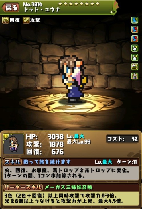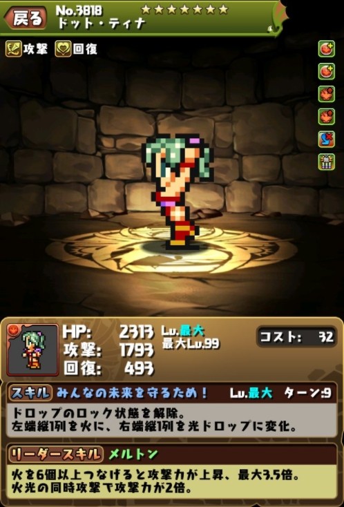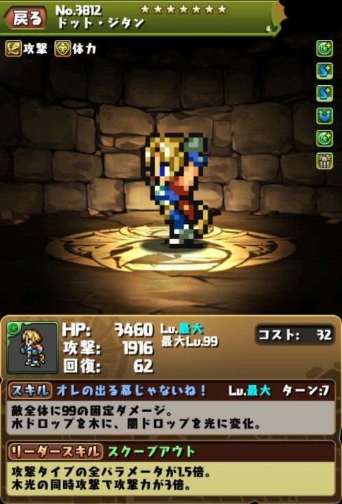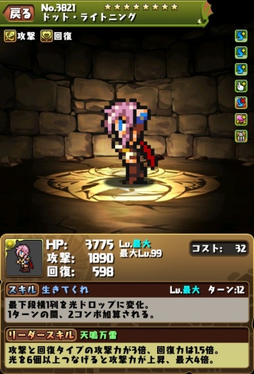 続いて、ドット絵に究極進化したキャラクターの画面写真をご紹介します! #パズドラ