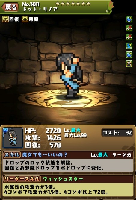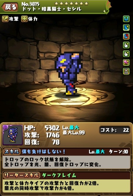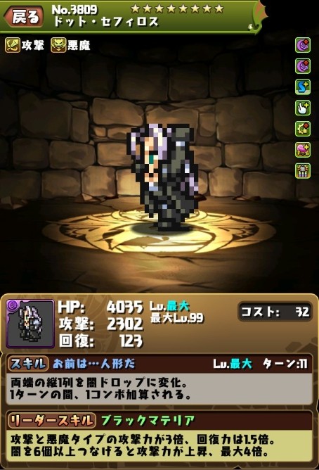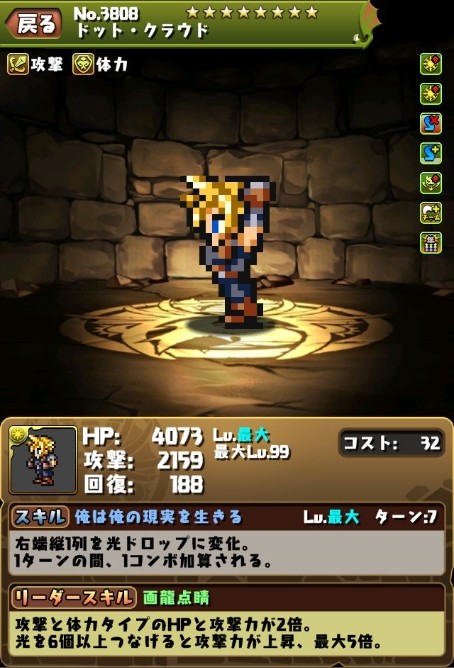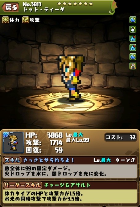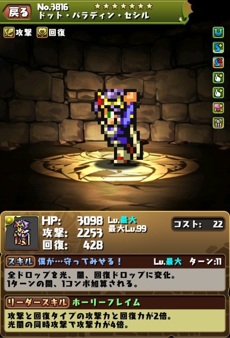 続いて、ドット絵に究極進化したキャラクターの画面写真をご紹介します! #パズドラ