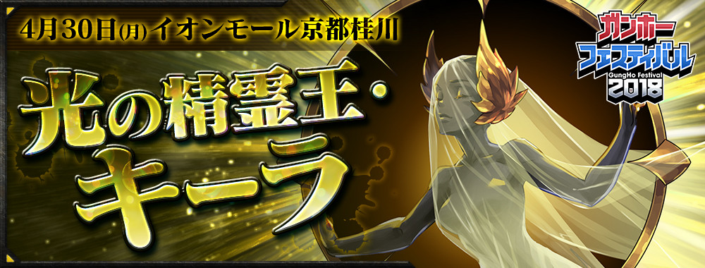 04/30(月)イオンモール京都桂川で実施されるガンホーフェスティバル2018【全国ツアー】で「パズドラレーダー」を使って「キーラ 降臨!」を手に入れることができる!