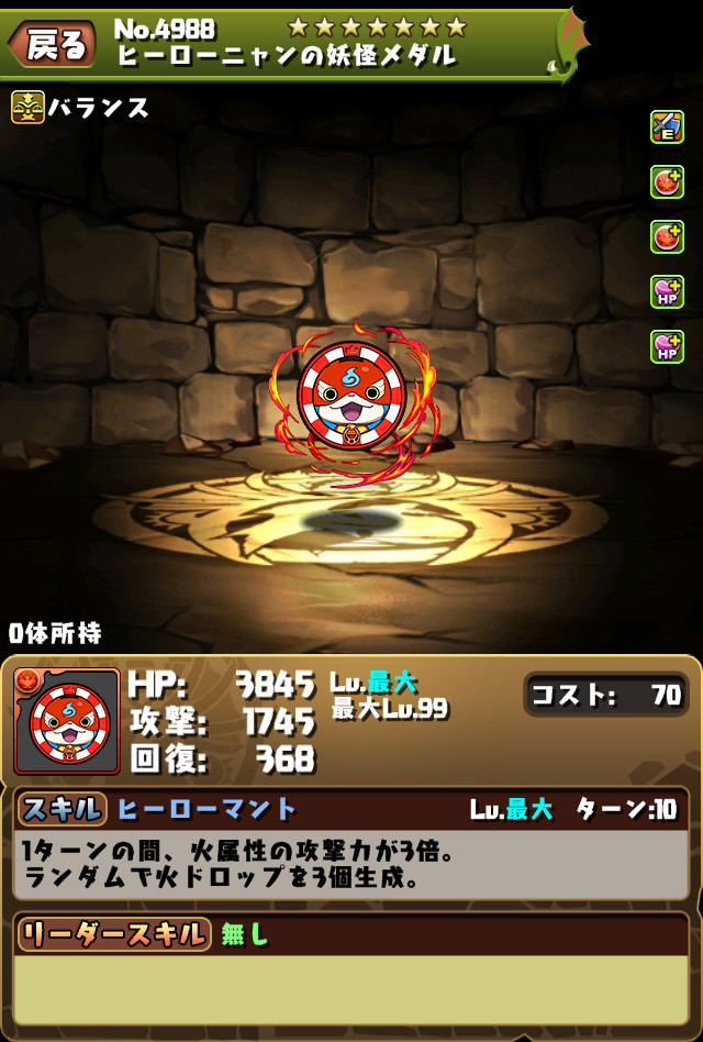 今回は「チャレンジLv10【固定チーム】」を初クリアすると「開催記念!妖怪ウォッチ ワールドコラボガチャ 1回」が、全てのフロアをクリアすると「ヒーローニャン」「ヒーローニャンの妖怪メダル」がゲーム内メールで届くぞ!