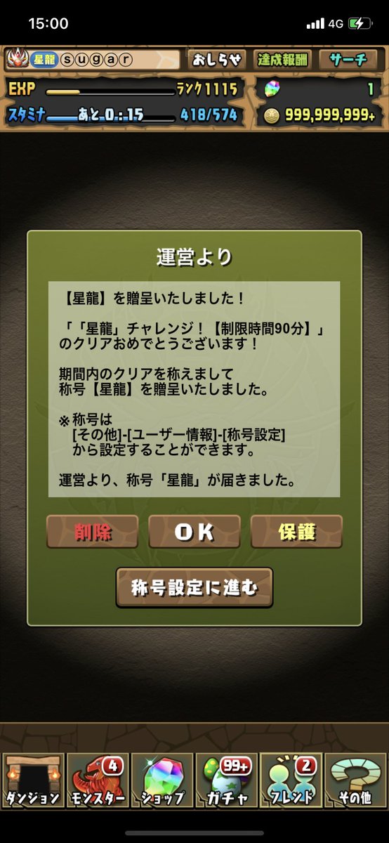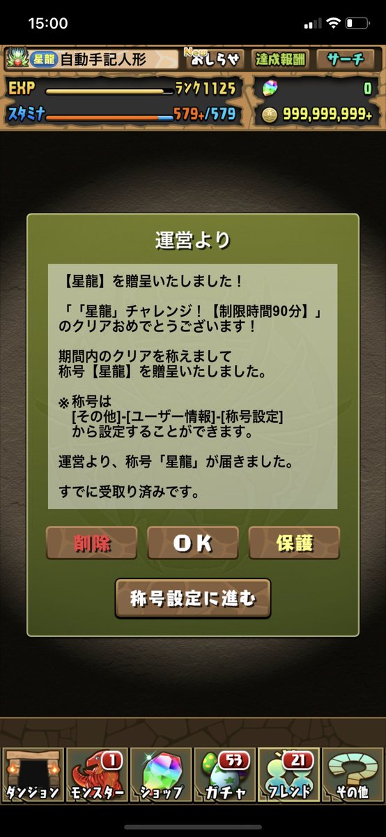 スペシャルダンジョン『「星龍」チャレンジ!【制限時間90分】』『「九」チャレンジ!【制限時間90分】』を見事クリアされた方へ、称号「星龍」「九」を贈呈!
