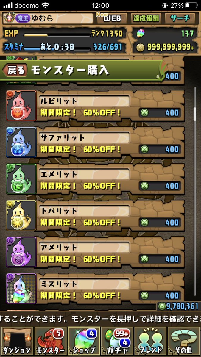 第5弾、[モンスター購入]対象モンスター60%OFF!