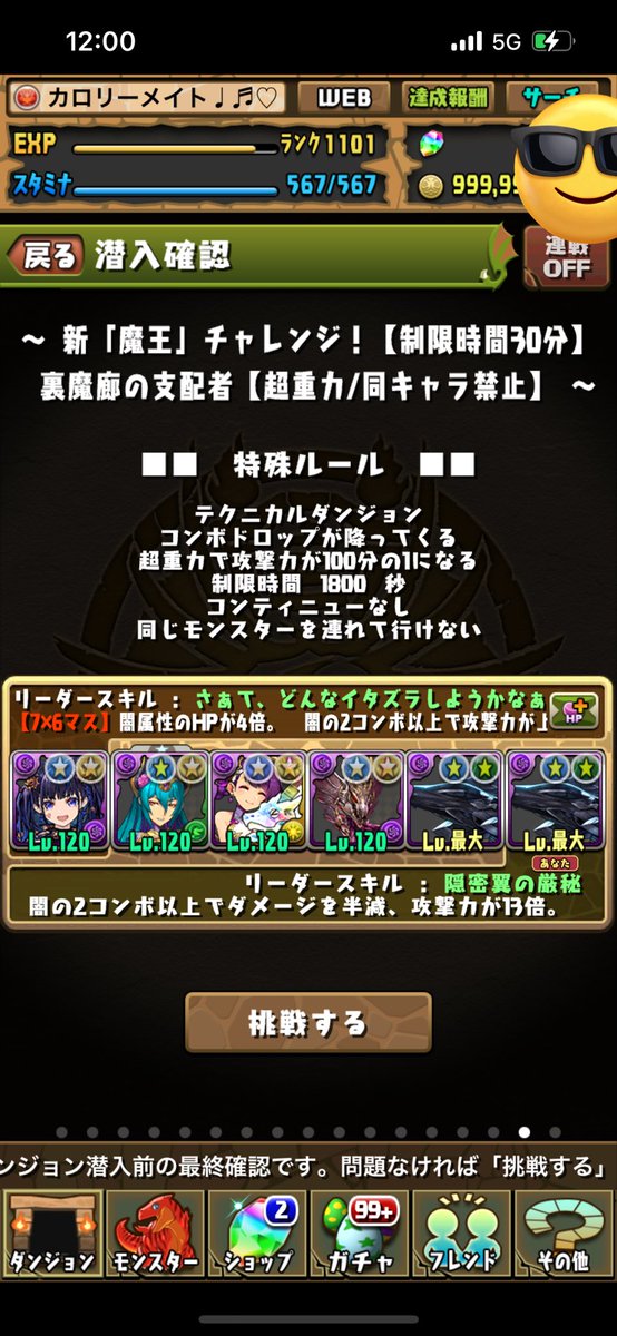 魔王チャレンジ相手の攻撃力2.4倍ですね