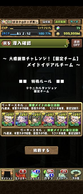 期間中、スペシャルダンジョン「大感謝祭チャレンジ!【固定チーム】」を開催!