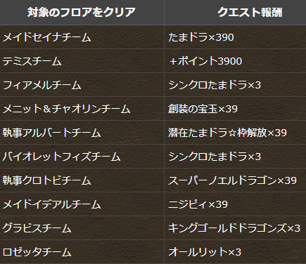 「メイドセイナチーム」などの固定チームで構成された各フロアをクリアして、クエスト報酬をゲットしよう!