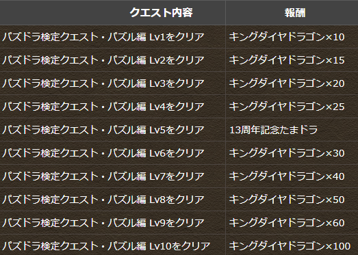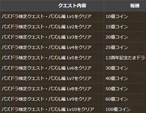 「パズドラ検定クエスト・パズル編」の報酬を一部変更しました。