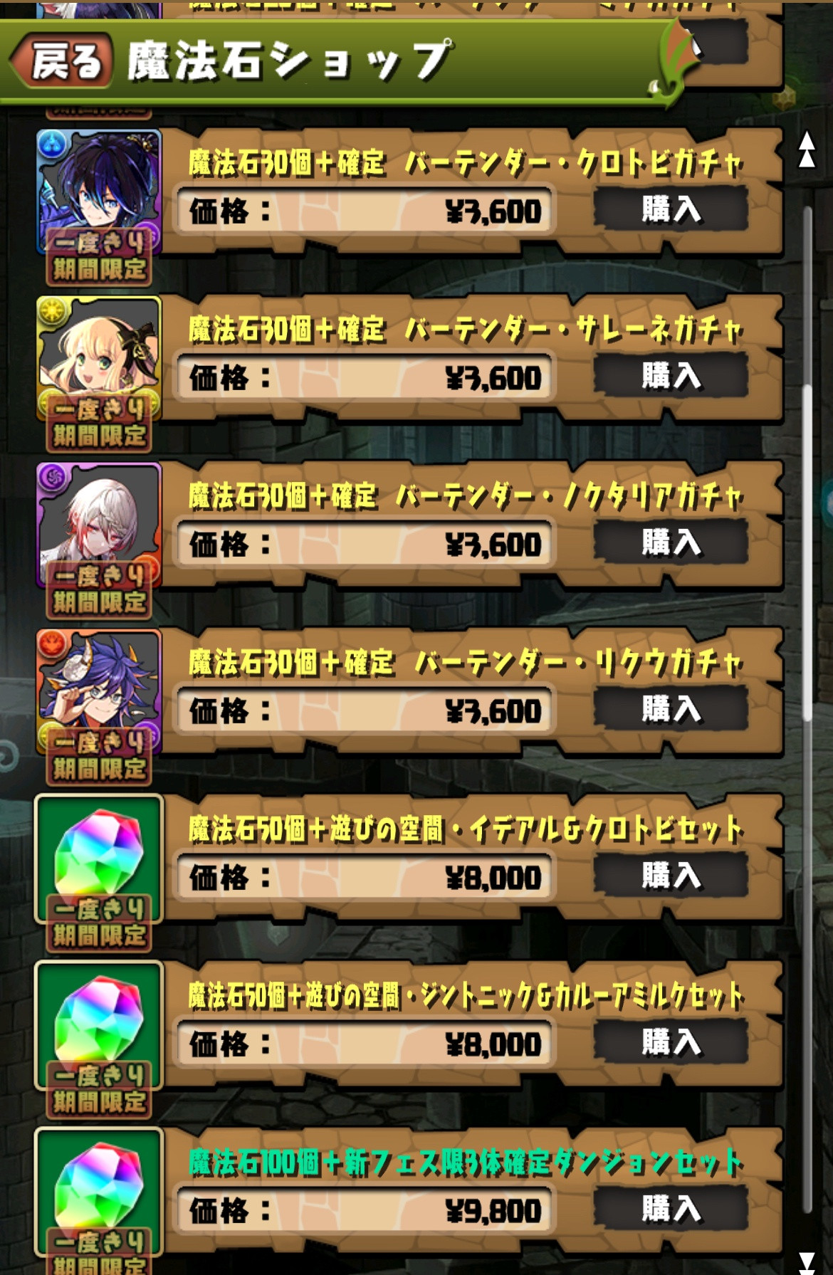 ▼ 魔法石30個+確定 バーテンダー・クロトビガチャ